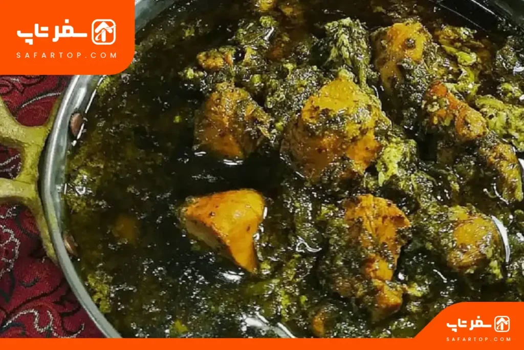 - مواد اصلی: سبزیهای محلی، سیر، پیاز، آبغوره یا رب انار